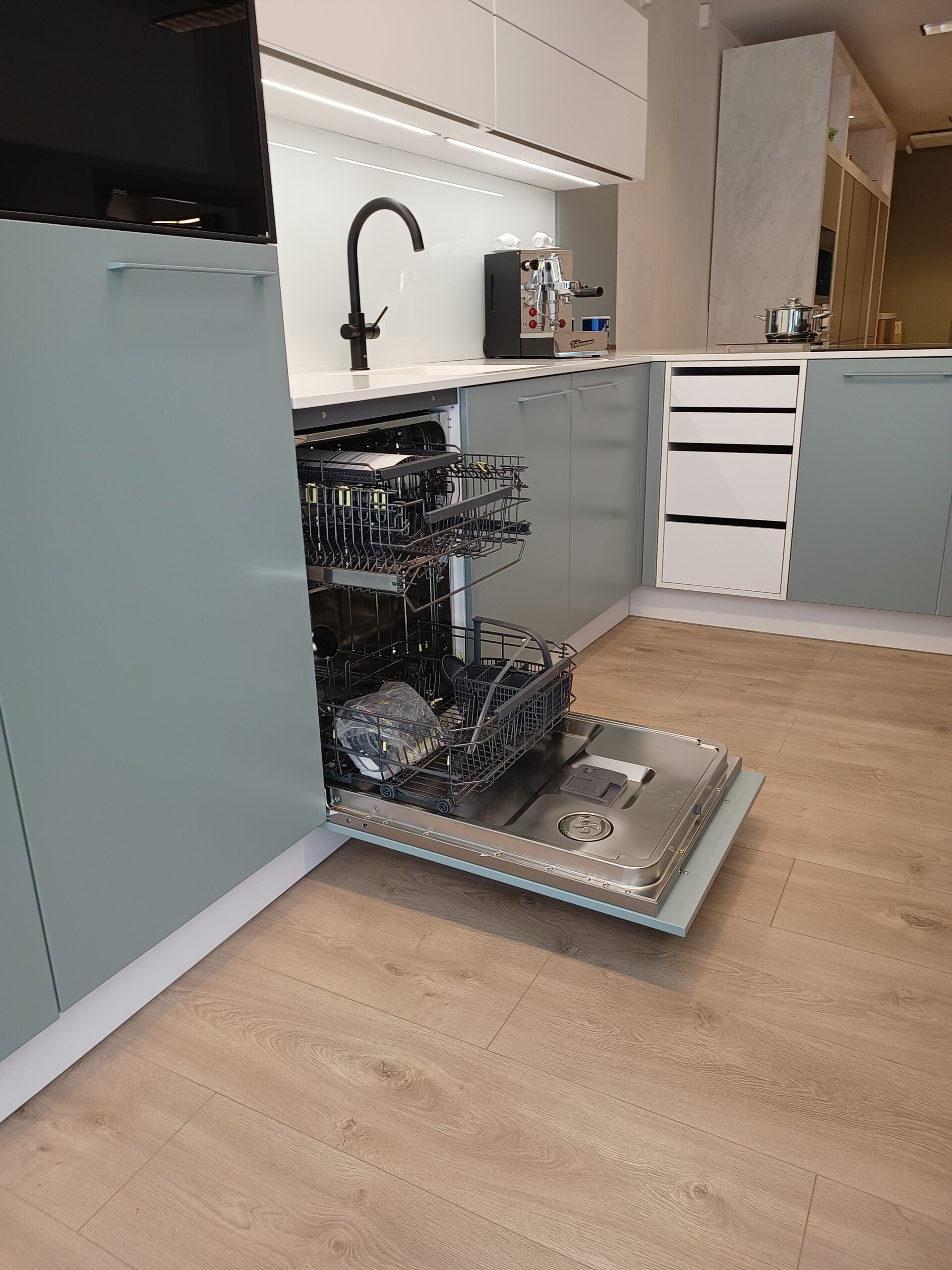De halfhoge kasten zijn uitgerust met zowel een vriezer als een koeler, en daarnaast vind je er een oven en een combi-magnetron. Ook aan praktisch gemak is gedacht: de keuken beschikt over een vaatwasser, een brede 6-pits kookplaat van 90 cm en een moderne plafondafzuiger met plasmafilter.